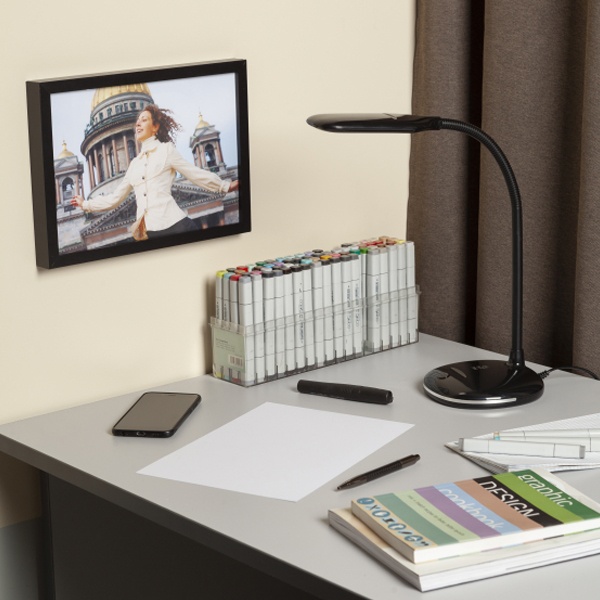 Настольный LED светильник черного цвета с гибкой стойкой, мощностью 8 Ватт и нейтральным светом. Б0041083