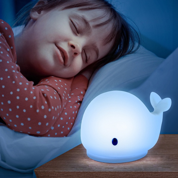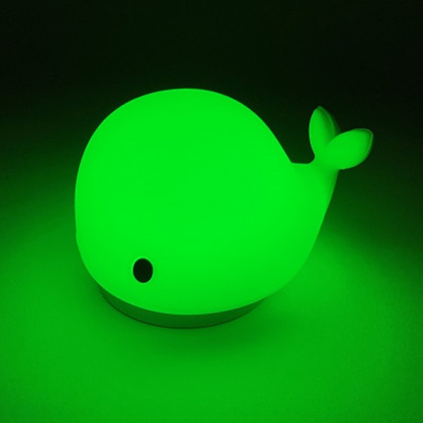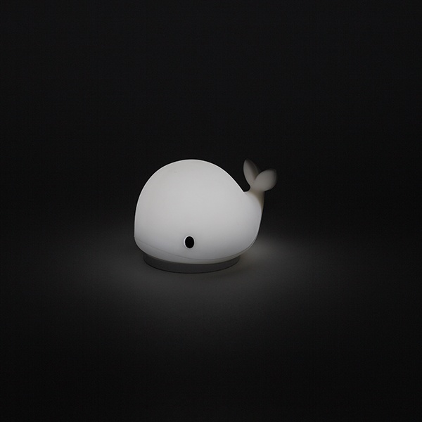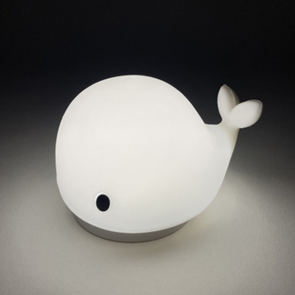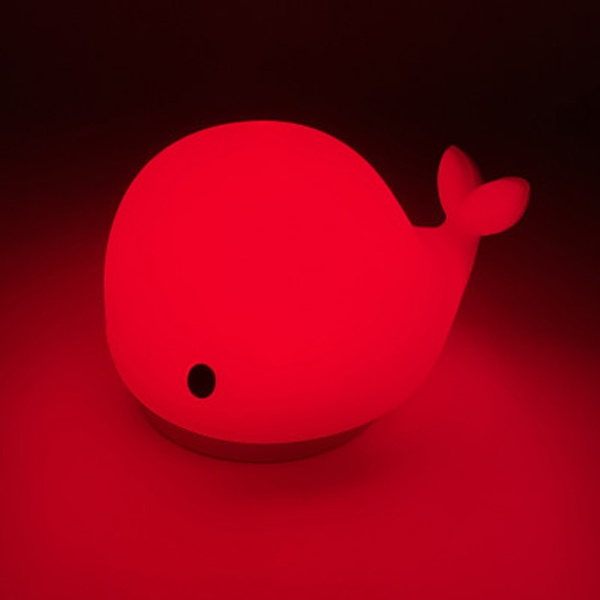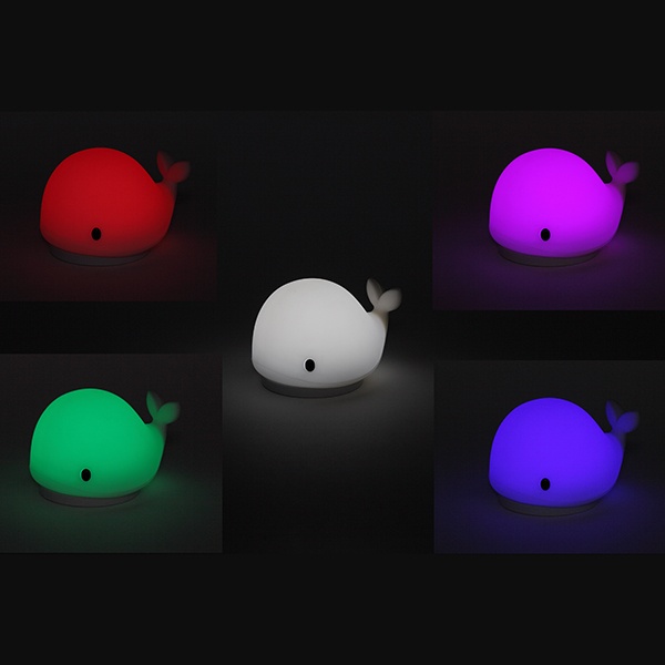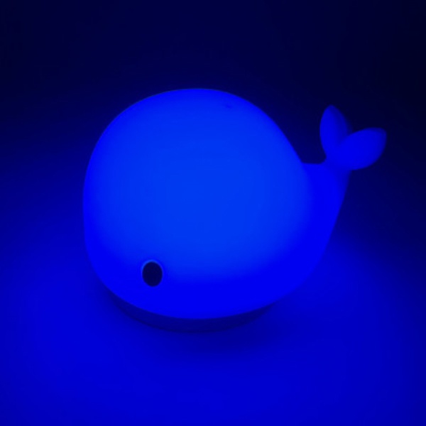 "Мягкий" материал. Работает от элементов 3 х ААА (не входят в комплект поставки) или от USB. USB кабель в комплекте. Выключатель для выбора типа питания и отключения/блокировки сенсора. 2 режима (переключение прикосновением): белый свет, RGB c переходами цветов. Дизайн в виде кита.