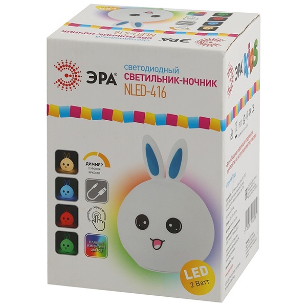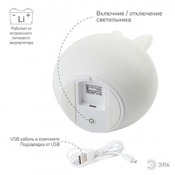 Светильник-ночник ЭРА NLED-414: - Работает от встроенного литиевого аккумулятора с подзарядкой от USB