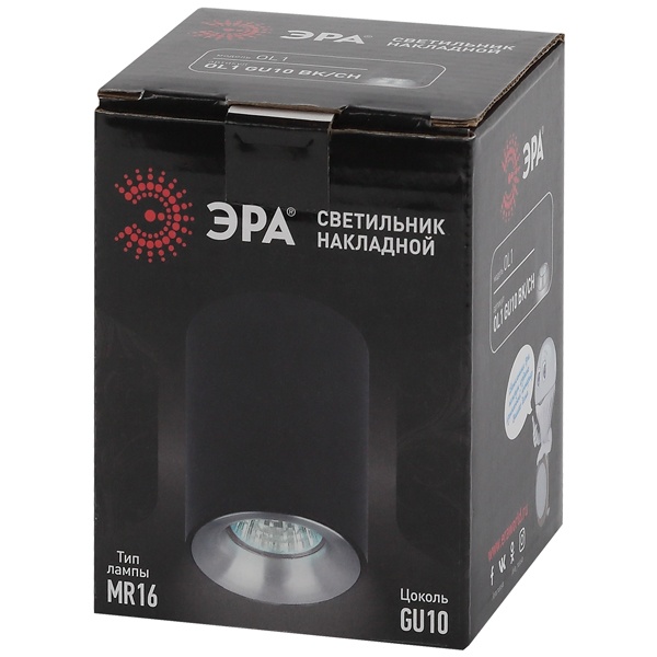 OL1 GU10 BK/CH Подсветка ЭРА накладной, GU10, D80*100мм, черный/хром (50/900)