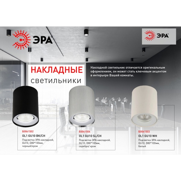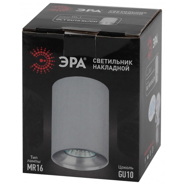 Светильник направленного света ЭРА OL1, накладного монтажа, под лампу с цоколем GU10, цвет корпуса серебро/хром Б0041504
