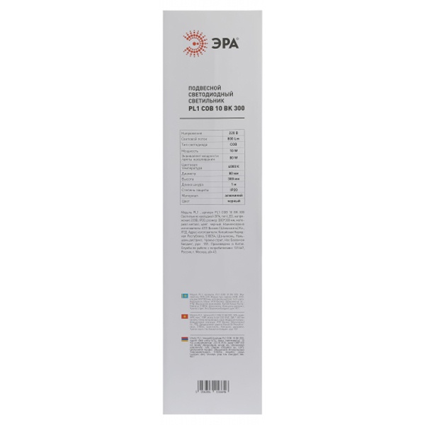 • Подвесной светильник ЭРА PL1 COB-10 BK 300 COB 10W D80x300mm черный 5056306016646