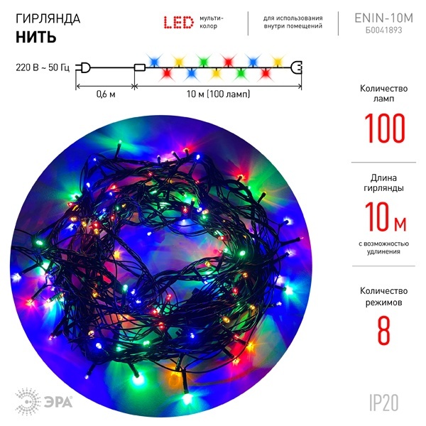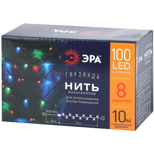 Гирлянда Нить мультиколор для использования внутри помещений. Применяется для световой иллюминации и создания праздничной атмосферы, декорирования интерьера и новогодних композиций.