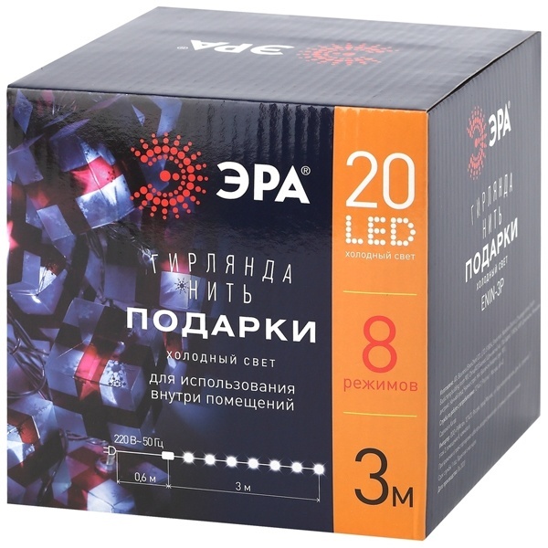 ENIN-3P ЭРА Гирлянда LED Нить Подарки 3 м холодный свет, 220V, IP20 (24/192)