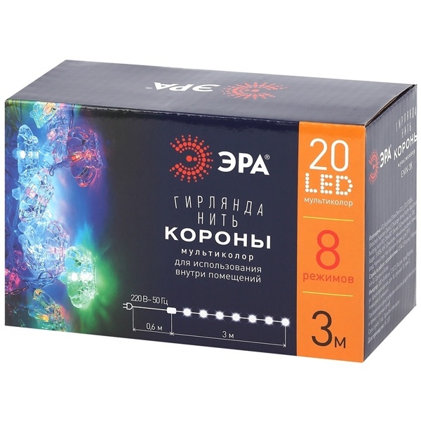 Гирлянда светодиодная "Нить Короны" 3м 20LED 8 режимов 220В IP20 мультиколор ЭРА Б0041898