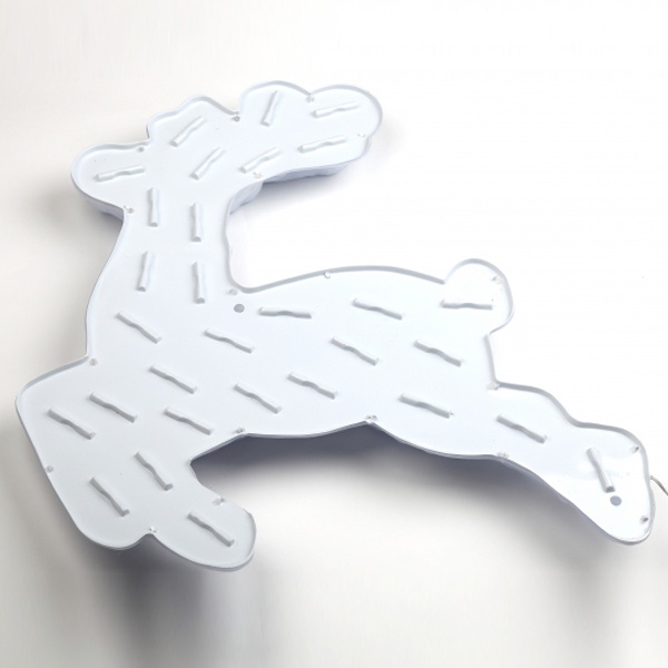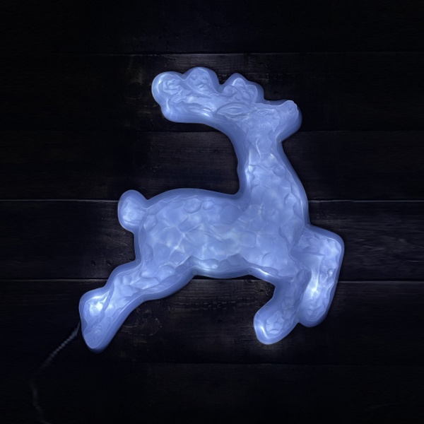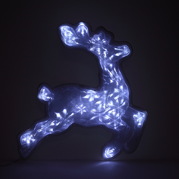 Новогодняя светодиодная настенная фигура ЭРА "Олень" для праздничного декора внутри и снаружи помещений. Защищена от влаги и пыли (IP44), отличается морозостойкостью. Работает от стандартной электросети 220 В, прозрачный провод практически не заметен. LED-фигура представляет собой бегущего северного оленя, узор на теле которого напоминает снежинки. Светится холодным белым светом. Дизайн фигуры идеально подходит к зимним праздникам. Фигура легкая, можно крепить на двусторонний скотч (в комплект не входит). Размеры фигуры: 55 х 4,2 х 50 см. Свет создают 20 ярких и экономичных светодиодов, которые не перегреваются даже при длительной работе без перерывов. Новогодняя LED-фигура - простой и быстрый способ создать праздничное настроение, украсить дом, офис, общественное пространство.