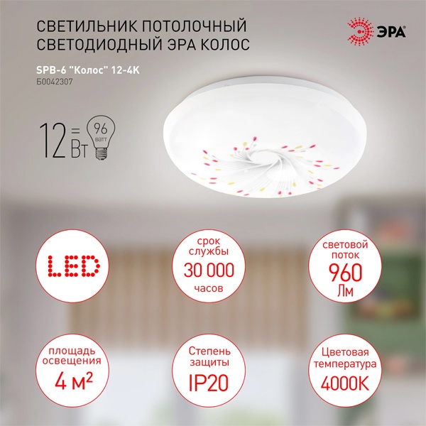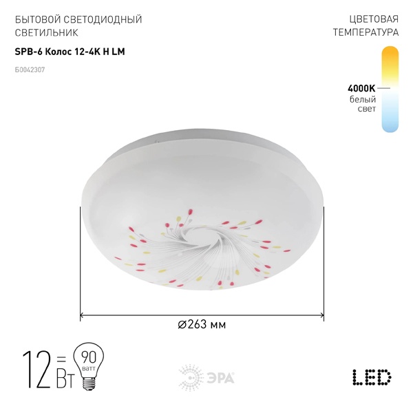 Светильник потолочный светодиодный ЭРА Классик без ДУ SPB-6 "Колос" 12-4K 12Вт 4000K 960Лм