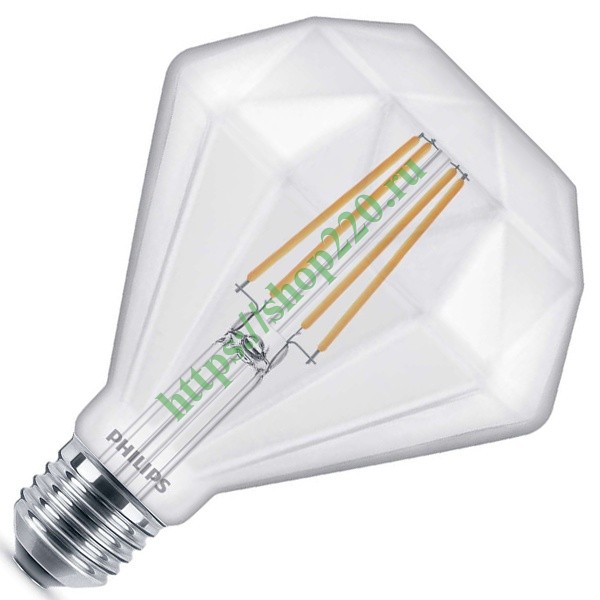 Филаментная, диммируемая, декоративная лампочка в форме бриллианта, мощностью 5 Ватт, с цоколем E27, теплый свет Б0042397