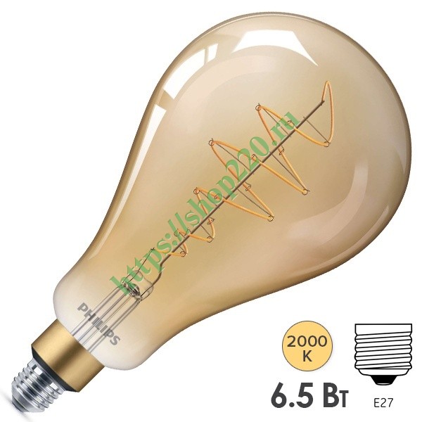 Филаментная, диммируемая, декоративная лампочка в форме груши, мощностью 6,5 Ватт, с цоколем E27, очень теплый свет Б0042400