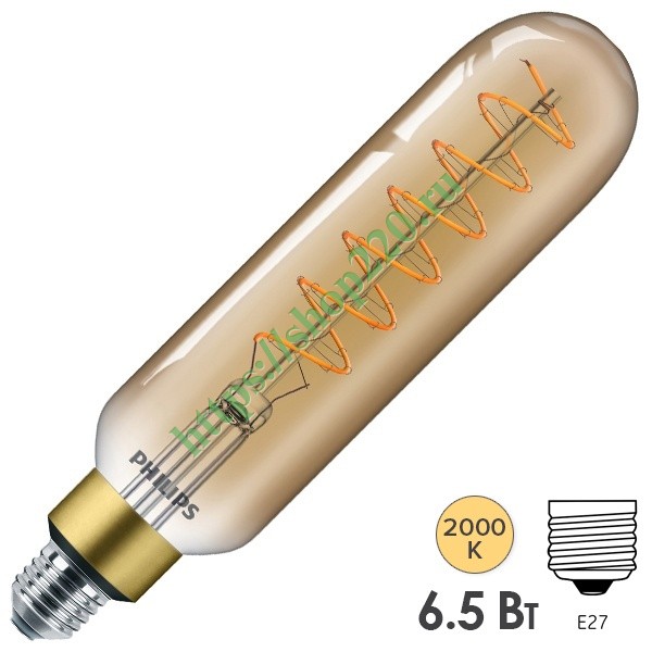 Филаментная, диммируемая, декоративная лампочка, прямая колба, мощностью 6,5 Ватт, с цоколем E27, очень теплый свет Б0042401