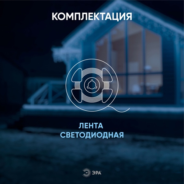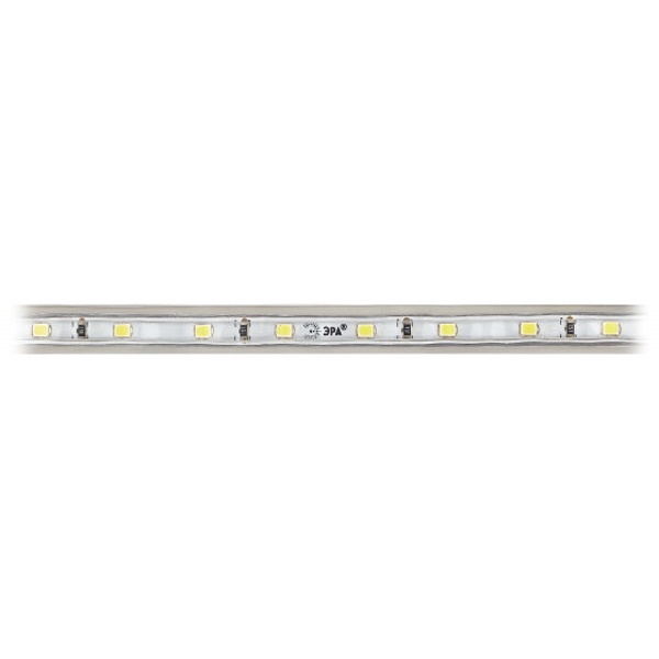 Светодиодная лента 220В, одноцветная, влагозащищённая. Рекомендуется для уличной подсветки. Лента на двустороннем скотче. Для надежного крепления в условиях перепада температуры и влажности применяются крепежные силиконовые скобы ЭРА. Торцы ленты необходимо закрывать заглушками.