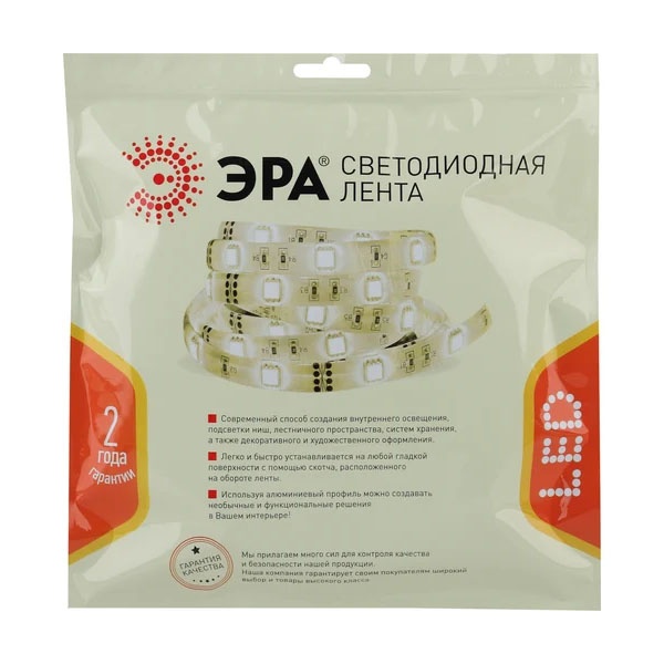 Светодиодная лента ЭРА LS2835 напряжением 24 Вольта, мощностью 27 Ватт на метр, нейтральный белый свет Б0043105