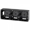 Заглушка с выводом в нижней части для силовых электрических или слаботочный кабелей для прямого подключения. Накладка из негорючего пластика, крепится на защелках. Конструкция суппорта выполнена для ровного объединения механизмов по горизонтали и вертикали.