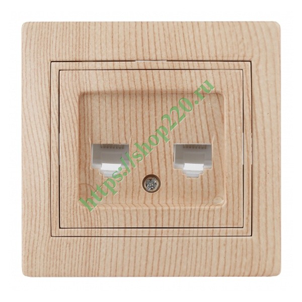 Двухместная компьютерная интернет розетка RJ45 для скрытого монтажа в сборе, цвета сосна, Intro Plano. Б0043246