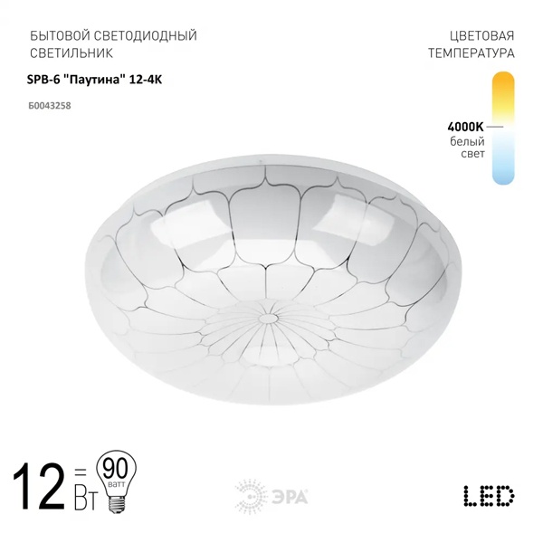 Светильник потолочный светодиодный ЭРА Классик без ДУ SPB-6 "Паутина" 12-4K LM/1 12Вт 4000K 960Лм