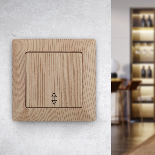 Одноклавишный проходной выключатель для скрытого монтажа в сухих помещениях, цвета сосна, Intro серии Solo. Б0043283
