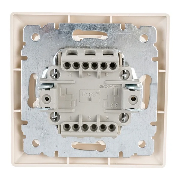 Выключатель изготовлен из качественного негорючего термопласта, укомплектован рамкой и клавишами, подключение винтовыми клеммами. Установка в подрозетник производится двумя вариантами как на монтажные лапки, так и на винты.