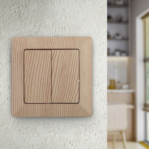 Двухклавишный выключатель для скрытого монтажа в сухих помещениях, цвета сосна, Intro серии Solo. Б0043290