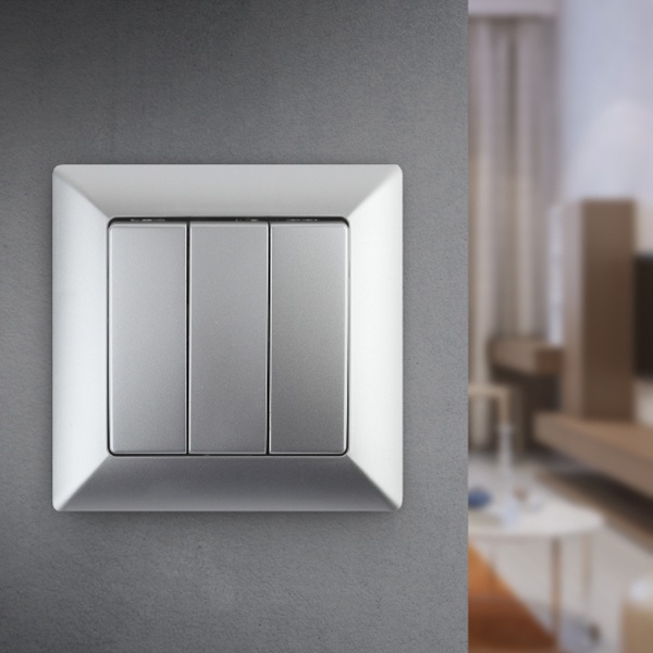 Трехклавишный выключатель для скрытого монтажа в сухих помещениях, цвета алюминий, Intro серии Solo. Б0043300