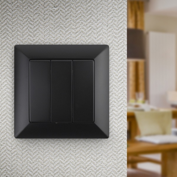 Трехклавишный выключатель для скрытого монтажа в сухих помещениях, цвета антрацит, Intro серии Solo. Б0043302