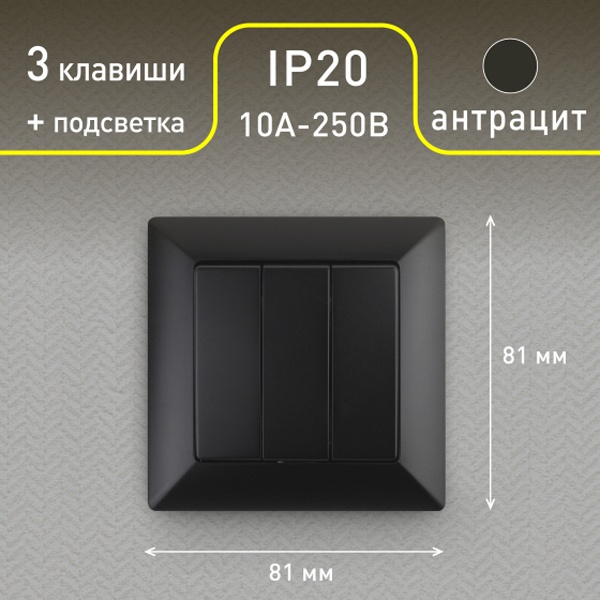 4-106-05 Intro Выключатель тройной, 10А-250В, СУ, Solo, антрацит (10/200/2400)