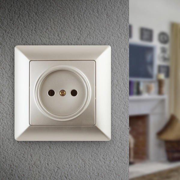 Электрическая розетка двухполюсная для скрытого монтажа в сухих помещениях, цвета шампань, Intro серии Solo. Б0043308