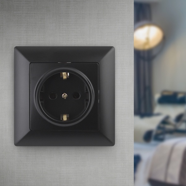 Электрическая розетка с заземлением для скрытого монтажа в сухих помещениях, цвета антрацит, Intro серии Solo. Б0043316