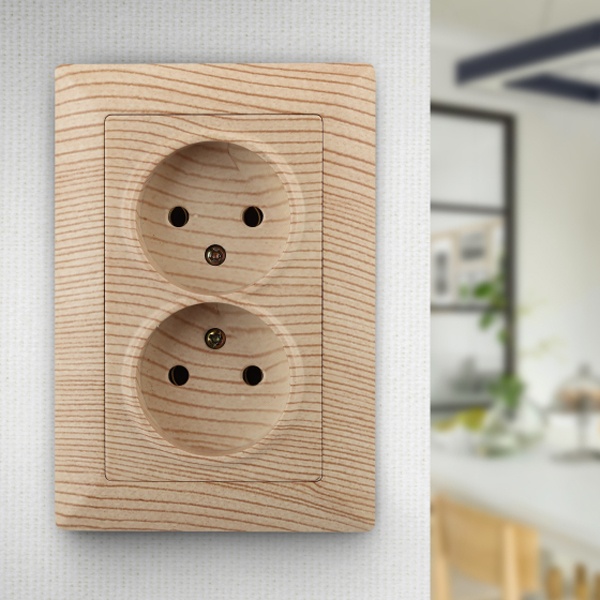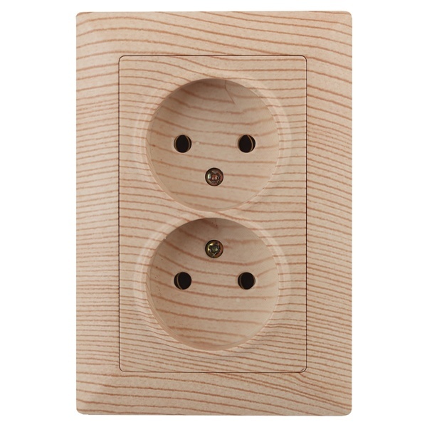 Двойная электрическая двухполюсная розетка для скрытого монтажа в одну монтажную коробку для сухих помещений, цвета сосна, Intro серии Solo. Б0043332