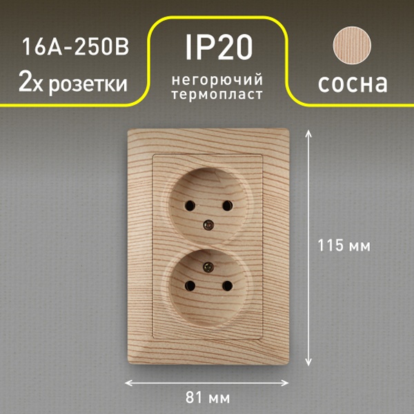4-204-11 Intro Розетка 2х2P, 16А-250В, СУ, Solo, сосна (10/100/1500)