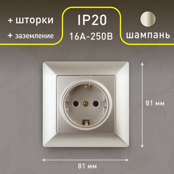 4-206-04 Intro Розетка 2P+E Schuko со шторками, 16А-250В, СУ, Solo, шампань (10/200/2400)