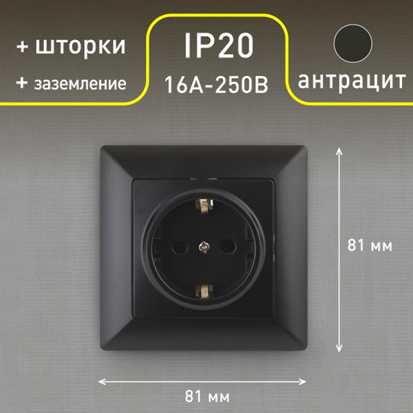 4-206-05 Intro Розетка 2P+E Schuko со шторками, 16А-250В, СУ, Solo, антрацит (10/200/2400)