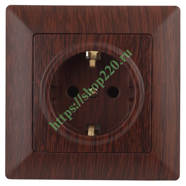 Электрическая розетка с заземлением и защитными шторками для скрытого монтажа в сухих помещениях, цвет венге, Intro серии Solo. Б0043345