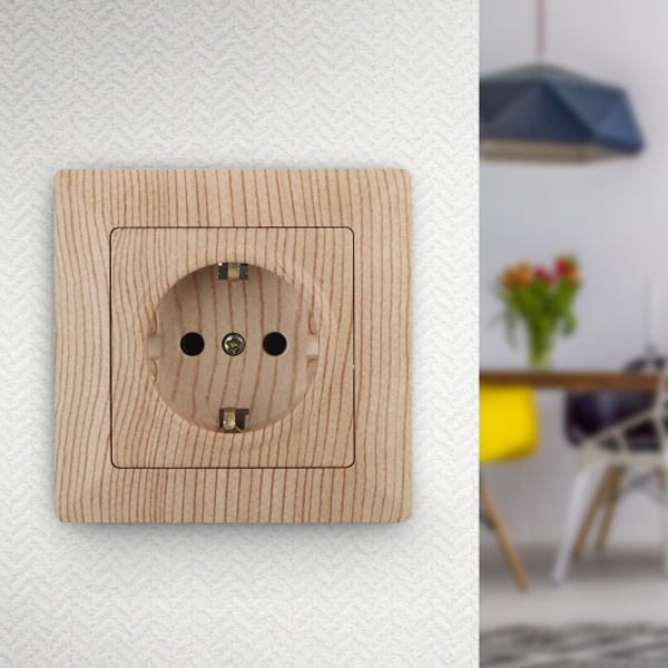 4-206-11 Intro Розетка 2P+E Schuko со шторками, 16А-250В, СУ, Solo, сосна (10/200/2000)
