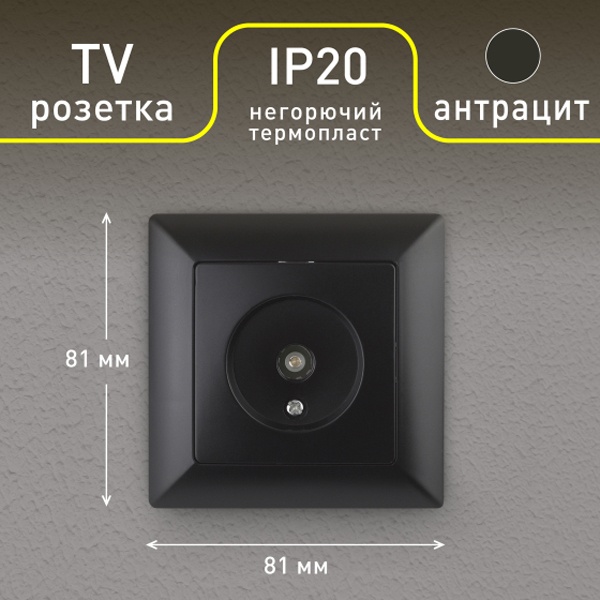 Розетка Intro Solo 4-301-05 TV одиночная, СУ, антрацит