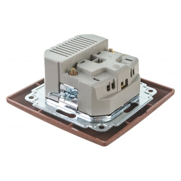 Розетка изготовлена из качественного негорючего термопласта, укомплектована рамкой и накладкой, подключение винтовыми клеммами. Установка в подрозетник производится двумя вариантами как на монтажные лапки, так и на винты.