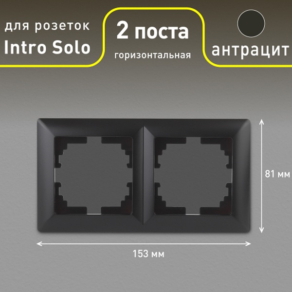 Декоративное обрамление цвета антрацит на 2 электроустановочных изделия скрытой установки, Intro серии Solo Б0043414