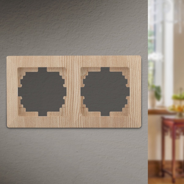 Декоративное обрамление цвета сосна на 2 электроустановочных изделия скрытой установки, Intro серии Solo Б0043416