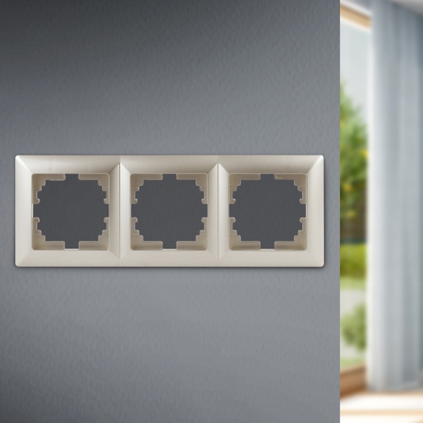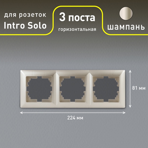 Декоративное обрамление цвета шампань на 3 электроустановочных изделия скрытой установки, Intro серии Solo Б0043420