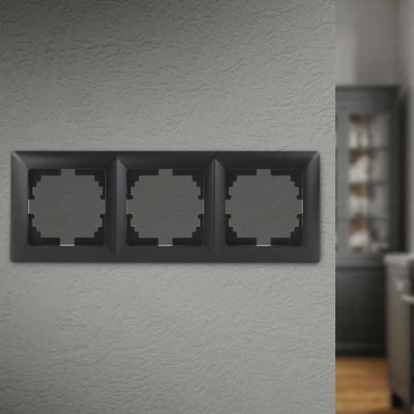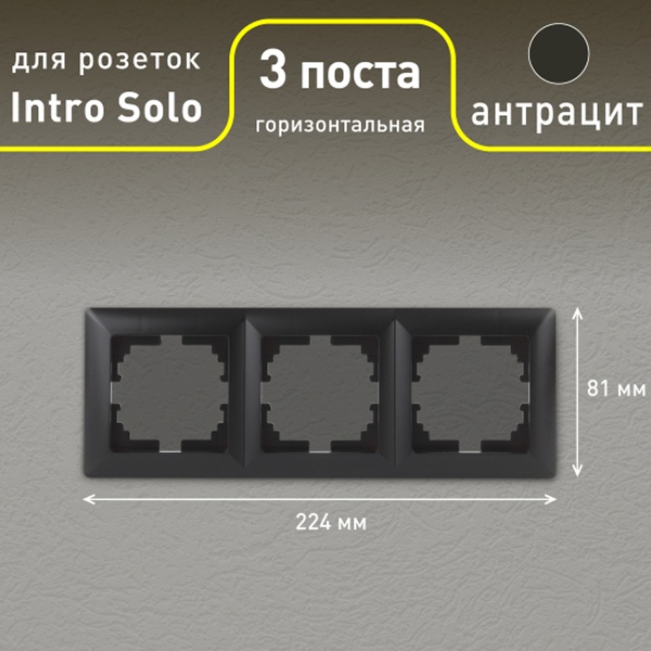 Декоративное обрамление цвета антрацит на 3 электроустановочных изделия скрытой установки, Intro серии Solo Б0043421