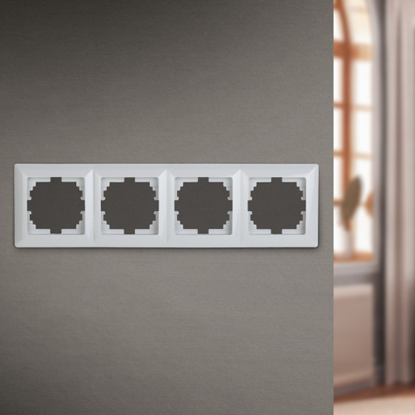Декоративное обрамление белого цвета на 4 электроустановочных изделия скрытой установки, Intro серии Solo Б0043424