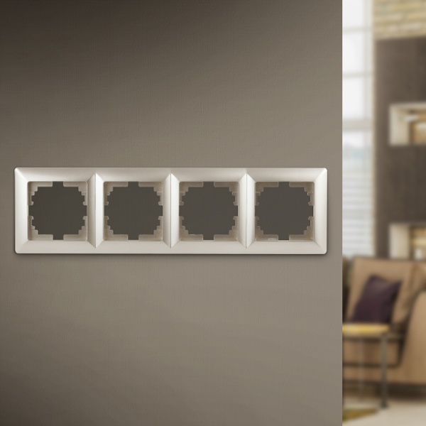 Декоративное обрамление цвета шампань на 4 электроустановочных изделия скрытой установки, Intro серии Solo Б0043427