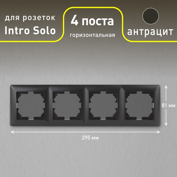 Рамка для розеток и выключателей Intro Solo 4-504-05 на 4 поста, СУ, антрацит
