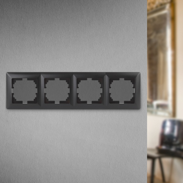 Декоративное обрамление цвета антрацит на 4 электроустановочных изделия скрытой установки, Intro серии Solo Б0043428