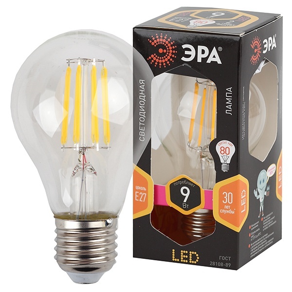 Лампа светодиодная филаментная F-LED A60-9W-827-E27 9Вт грушевидная тепл. E27 Эра Б0043433