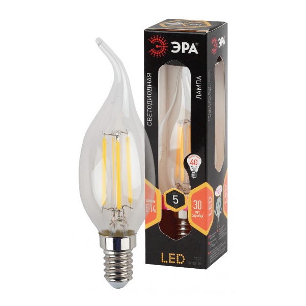 Лампочка светодиодная ЭРА F-LED F-LED BXS-5W-827-E14 Е14 / Е14 5Вт филамент свеча на ветру теплый белый свет