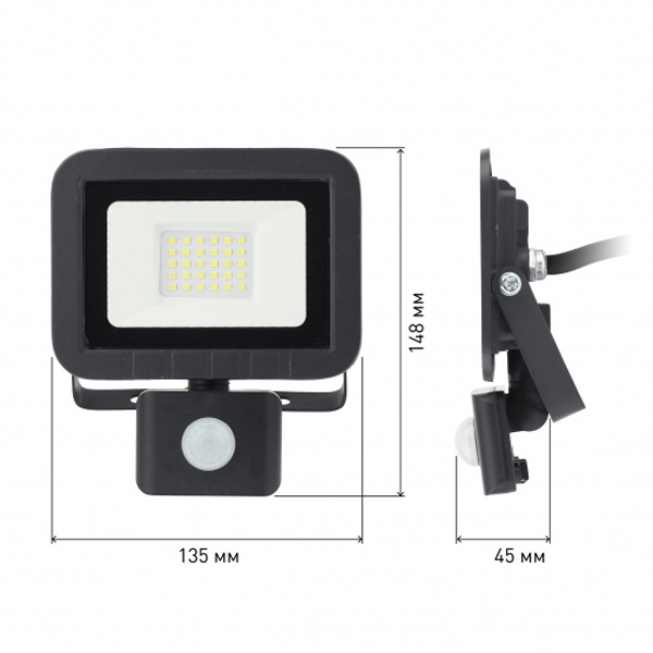 Прожектор светодиодный LPR-041-2-65K-030 30Вт 6500К 2400лм IP65 135х148х45 уличный датчик движ. регулир. Эра Б0043586