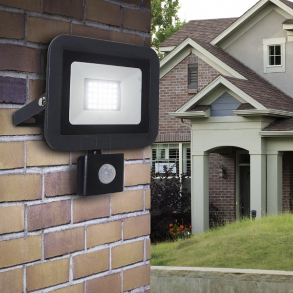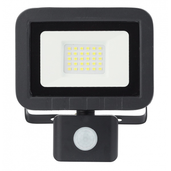 Прожектор светодиодный, влагозащищенный с датчиком движения в алюминиевом корпусе, мощностью 30 Ватт, холодный дневной свет Б0043586