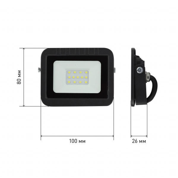 Влагозащищенный светодиодный прожектор с П-образным кронштейном, мощностью 10 Ватт, холодный дневной свет Б0043588