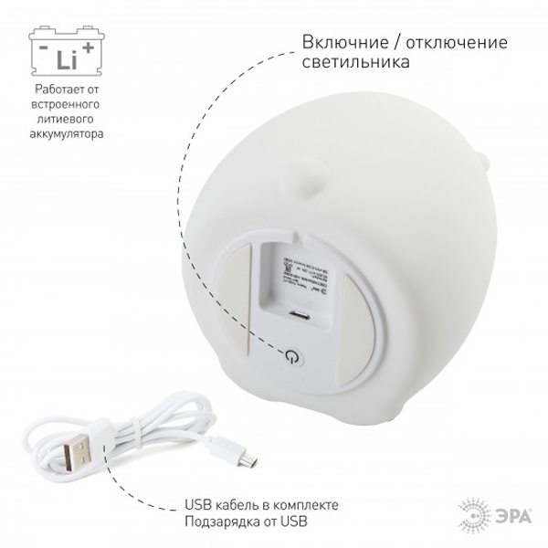 Мягкий светодиодный светильник-ночник ЭРА создаст уютный свет в темное время суток, поможет вашему ребенку спокойно спать, не боясь темноты. Или просто создаст настроение! Светильник можно переключать легким постукиванием, он выполнен из приятного на ощупь мягкого материала. Работает от встроенного литиевого аккумулятора с подзарядкой от USB.