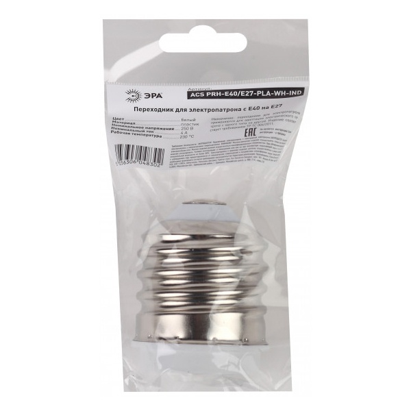 Переходник E40-E27 пластик бел. ACS PRH-E40/E27-PLA-WH-IND ЭРА Б0043742